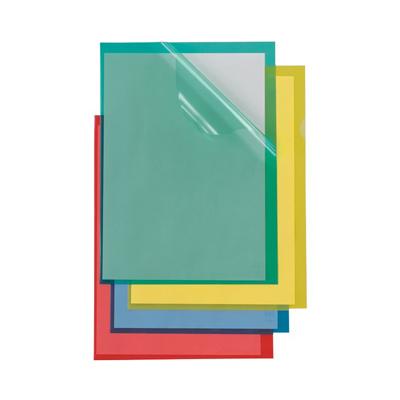 Cartellina a L in PVC colorato trasparente lucido ad altissimo spessore. Lunetta laterale per facilitare inserimento estrazione del contenuto. I fogli non scivolano e non aderisce il toner. Dimensione cm 21x29,7. Colore giallo.