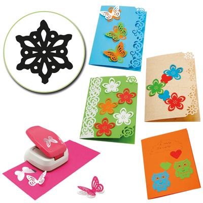 Perforatore mm.40X45 utilizzabile con carta da gr.120-220 in blister. Meccanismo a leva per dimezzare lo sforzo. Gufo.