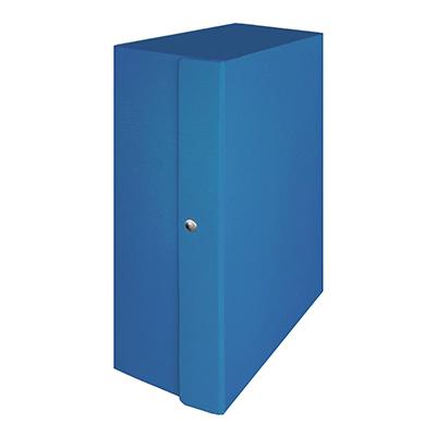 Scatola portaprogetti in cartone pressato goffrato, montaggio e chiusura con bottoni a pressione, corredata di tasca trasparente adesiva ed inserto in cartoncino prestampato per la personalizzazione, fornita smontata per il minimo ingombro, disponibile in 4 brillanti colorazioni.