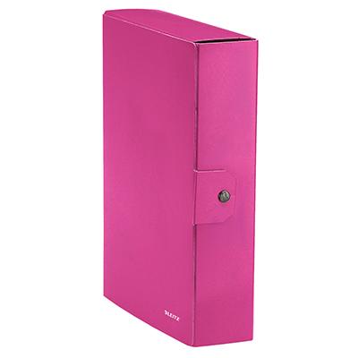 Portaprogetti realizzato in robusto cartoncino da 1,23 mm stampato e plastificato con finitura extra lucida e chiusura con bottone in metallo nichelato. Formato 25x35. Dorso cm.8. Colore viola metallizzato.