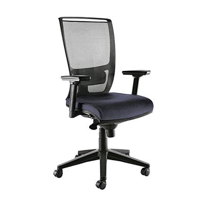 Seduta semidirezionale ergonomica girevole con base e ruote in nylon, struttura in acciaio nero, elevazione a gas, meccanismo synchro con sedile traslabile, anti shock, meccanismo a contatto permanente, schienale regolabile up-down, supporto lombare regolabile. Altezza totale: 108 119, profondit totale: 68, alt ezza schienale: 65, larghezza schienale: 48, larghezza seduta: 51, profondit sedile: 46. Braccioli inclu si. Certificazione EN 1335, a norma DL nr. 81, gas certificato TUV.