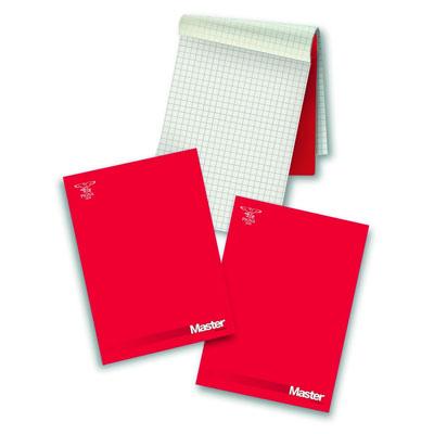 Blocco di fogli collati sul lato corto in carta da 80 gr./mq. e copertina in carta patinata da gr. 220. Disponibile nel formato A4 da fg. 90 e nelle rigature quadro da 10 mm. e bianco. Il fissaggio dei fogli permette uno strappo facile e preciso.