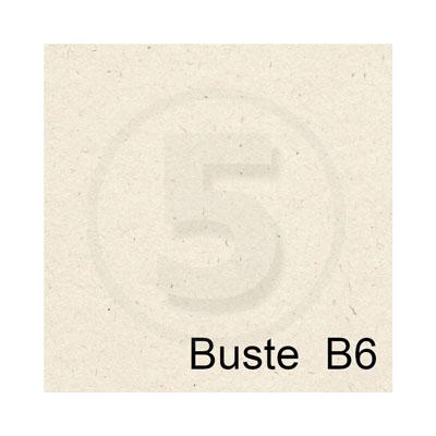 Buste in carta con impasto di fibra riciclata di pura cellulosa, fibre di cotone e pura cellulosa ECF. Taglio a punta gommato.