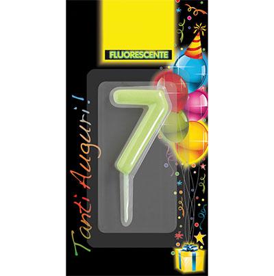 Candela compleanno con supporto altezza cm.5, numero nove fluorescente.