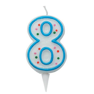 Candela numero da 8,5 cm, colore celeste; numero 0