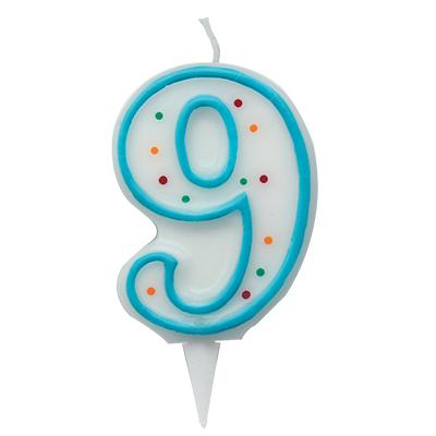 Candela numero da 8,5 cm, colore celeste; numero 8