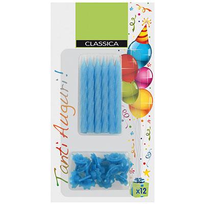 Candela spirale con supporto colore rosa scuro confezionata in blister da pz.12