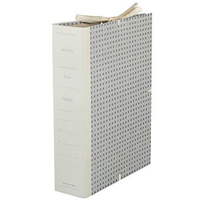 Cartella archivio rivestita con carta usomano e lacci ancorati con occhielli metallici. Dimensioni cm.35x25x20.