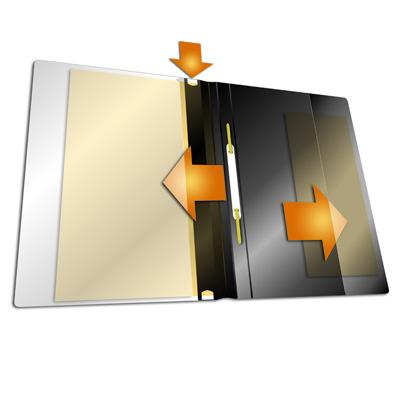 Cartellina ad aghi di alta qualit, formato A4, con copertina frontale trasparente personalizzabile e inserto longitudinale personalizzabile. Copertina posteriore colorata, con tasca interna verticale trasparente. Dotata di invito per asta di sospensione opzionale (cod. prodotto 1531). Può essere archiviata in registratori e raccoglitori ad anelli utilizzando gli occhielli opzionali (cod. prodotto 2996).