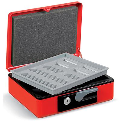 Cassette portavalori realizzate internamente in acciaio pressofuso senza saldature. La verniciatura a polvere ne garantisce durata e inalterabilità. Innovativo e brevettato meccanismo di apertura automatica. Serratura a cilindro con due chiavi. Vassoio interno portamonete e spugna fermamonete. Dimensioni mm. 230x185x80. Colore verde.
