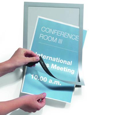 Cornice adesiva rimovibile formato A4 dotata di pannello frontale magnetico antiriflesso. Permette di esporre su qualsiasi superficie liscia e solida documenti e avvisi in modo elegante e professionale. L'inserto è facilmente sostituibile semplicemente sollevando il pannello magnetico e inserendo il nuovo documento. Il retro è adesivo e riposizionabile numerose volte senza lasciare residui. È l'ideale per esporre professionalmente documentazione finora appesa a pareti, vetrine, bacheche e arredi in modo disordinato. Perfetta per esporre su superfici vetrate, documenti, avvisi ed immagini fronte-retro in quanto la cornice è visibile da entrambi i lati. Utilizzabile in senso orizzontale e verticale. Colore oro.