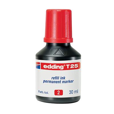 Inchiostro permanente resistente all'acqua in flacone con dosatore a goccia per ricaricare, svitando la punta, i marcatori permanenti Edding. Adatto per l'applicazione diretta con pennelli, penne, stencil e timbri. Contenuto ml.30. Colore nero.