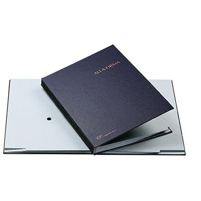 Libro firma 14 fogli con copertina in similpelle, dorso rinforzato in carta telata, rubricatura al piede. Formato utile mm.240x340.
