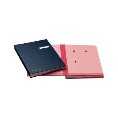 Libro firma 18 fogli in similpelle con porta etichetta sulla copertina, rinforzo in tela sullo snodo della prima pagina, dorso rinforzato in carta telata, rinforzo al piede sulla rubrica. Formato utile mm.240x340.