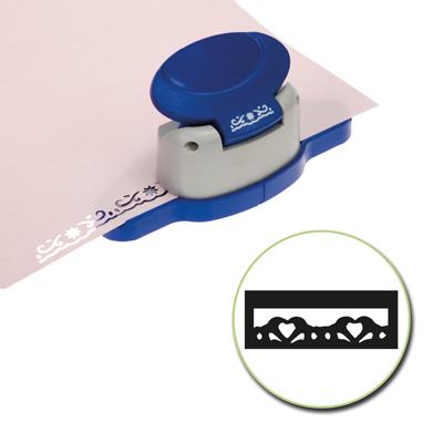 Perforatore singolo per bordi utilizzabile con carta da gr.80-220 in blister. Meccanismo a leva per dimezzare lo sforzo. Fiori.