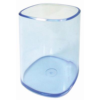 Portamatite in plastica trasparente con grande capienza e buona stabilità sulla scrivania.