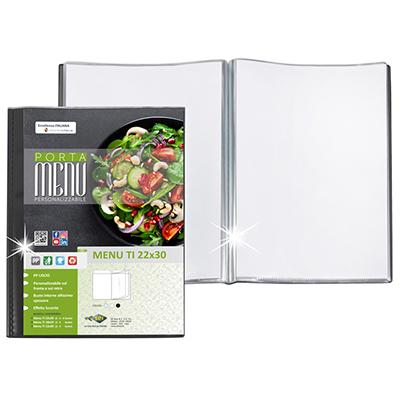 Porta menù in PP liscio bianco con copertine personalizzabili fronte e retro. 4 buste interne (8 facciate) ad altissimo spessore. Ideali per ristoranti, pizzerie, hotels, pubs.