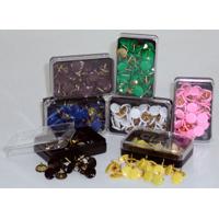 Puntine colorate, antiruggine con ottonatura sull'intero corpo metallico e testa ricoperta in plastica colorata, confezionate in scatole da 50 pz. monocolore. Nella confezione assortita sono fornite 50 scatole monocolore miste. PUNTINE RICOPERTE E COLORATE
