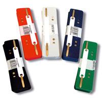 Raggruppatori con linguella fermacarte di colore oro indispensabili per archiviare documenti con foratura passo 80 mm. Archiviabili nei raccoglitori con meccanismo passo 60 e 80 mm.