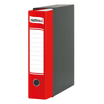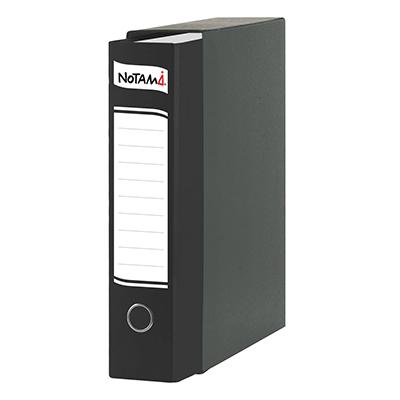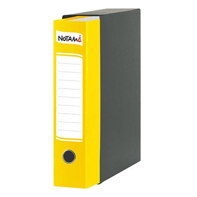 Registratore in cartone accoppiato di prima qualità rivestito con carta goffrata, completo di etichetta stampata e custodia rivestita in carta nera liscia, è dotato di meccanismo a leva in metallo a due anelli passo 8 completo di pressino, occhiello rinforzato in metallo sul dorso per facilitare l'estrazione, rivetti nichelati. Disponibile in diversi colori e nelle nuovissime tonalità fluo.