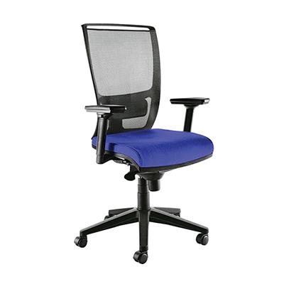 Seduta semidirezionale ergonomica girevole con base e ruote in nylon, struttura in acciaio nero, elevazione a gas, meccanismo synchro con sedile traslabile, anti shock, meccanismo a contatto permanente, schienale regolabile up-down, supporto lombare regolabile. Altezza totale: 108 119, profondit totale: 68, alt ezza schienale: 65, larghezza schienale: 48, larghezza seduta: 51, profondit sedile: 46. Braccioli inclu si. Certificazione EN 1335, a norma DL nr. 81, gas certificato TUV.