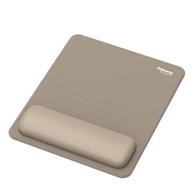 Tappetino per mouse ergonomico con poggiapolsi integrato per ridurre affaticamento e pressione sul polso. Dotato di base antiscivolo e realizzato con materiale riciclato.